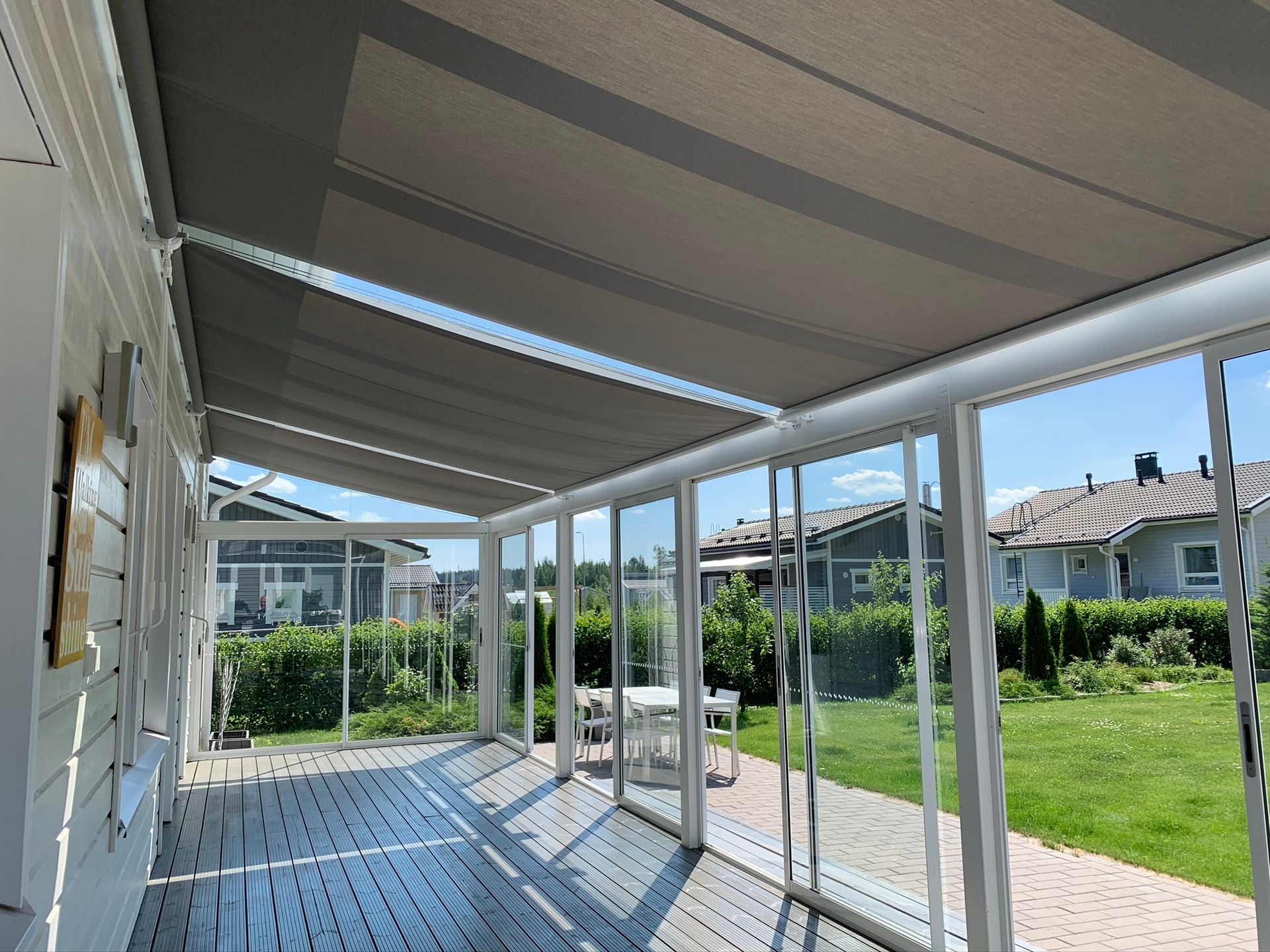 Lasiterasseille tehdyt verhoratkaisut toteutetaan yksilöllisesti.